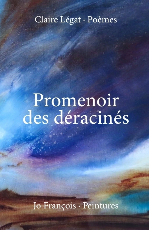 Dans Promenoir des déracinés se chevauchent poèmes ( Claire Légat ) et Huiles et Aquarelles ( Jo François ) .
